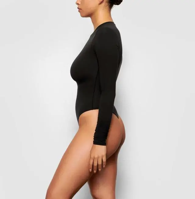 Our classic crew neck long sleeve bodysuit updated in lightweight, buttery soft fabric that hugs your curves. An essential styling piece to add to your rotation. \n \nHigh crew neckline, Long Sleeves, High cut leg opening, Thong back for no visible panty lines, 100% Cotton gusset, Snap closure \n76% Polyamide / 24% Elastane \nMachine wash cold, Non chlorine bleach, Cool iron, Do not dry clean \nImported