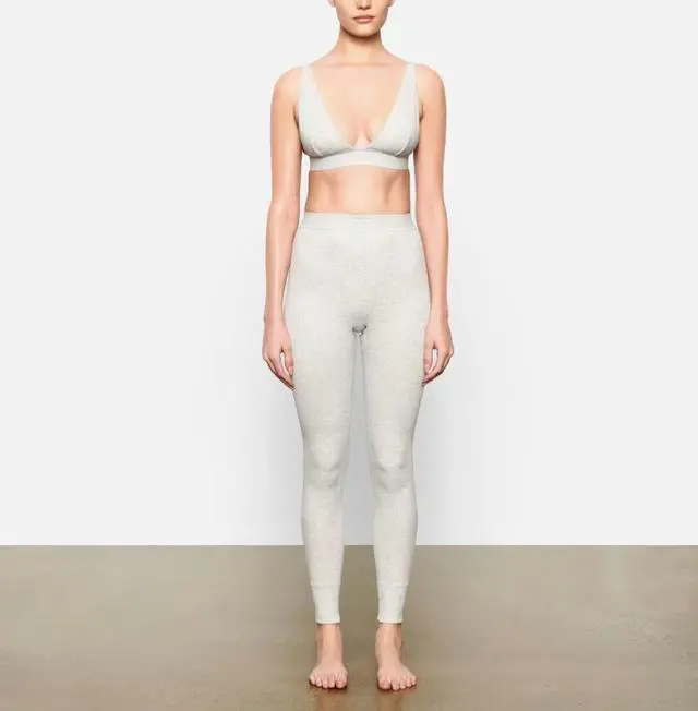 The SKIMS Cotton Rib Pant in Light Heather Grey (Medium) is a definitive lounge staple that blends athletic-inspired details with ultimate comfort. Part of the iconic Cotton Rib collection, these pants are celebrated for their textured ribbing and effortless, "off-duty" aesthetic.