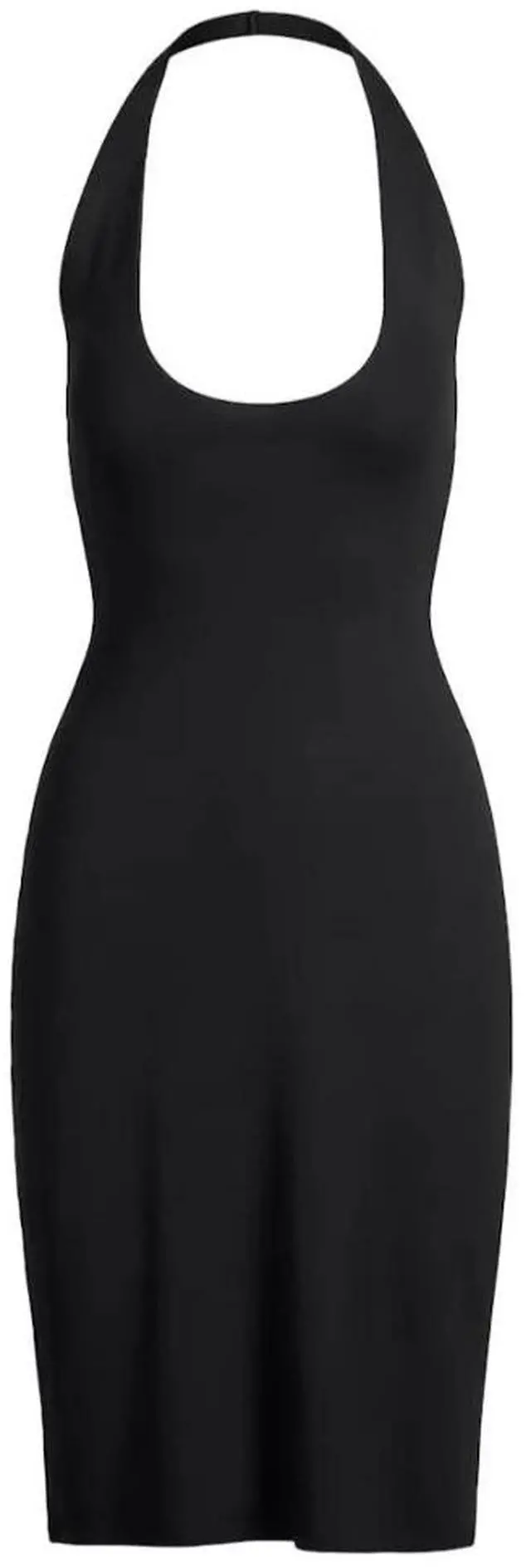 From brunch to date night, this midi is a must. Designed in our smooth and slinky modal, this plunge halter midi dress features a sexy low back and curve-hugging fit. Features an interior shelf bra for support. Hits below the knee and fits true to size. \n \nPlunge halter neckline, Interior shelf bra, Low back, Fits tight to body, Hits below the knee \n93% Modal / 7% Elastane \nMachine wash normal, Only non-Chlorine bleach allowed, Dry flat, Iron dry for steam low, Do not dry clean \nImported \n \n