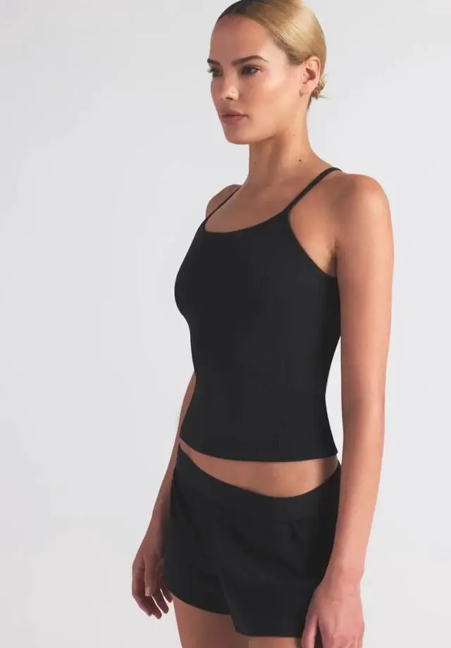 Our iconic ribbed cami, now in a new long length. Made with our classic breathable fabric, this scoop neck tank is the missing piece your wardrobe needs. Features a sporty racerback detail and body-hugging fit. Fits true to size. Scoop neckline, Jersey binding at neckline, Straps and armhole, Slight racerback detail, Fits tight to body, Long length 96% Cotton / 4% Elastane Machine wash cold, Do not bleach, Tumble dry low, Cool iron, Do not dry clean Imported