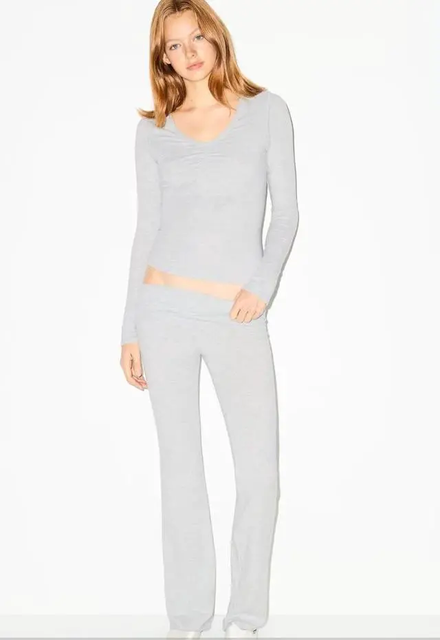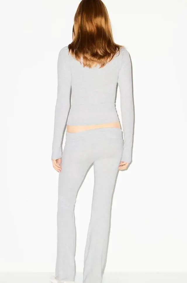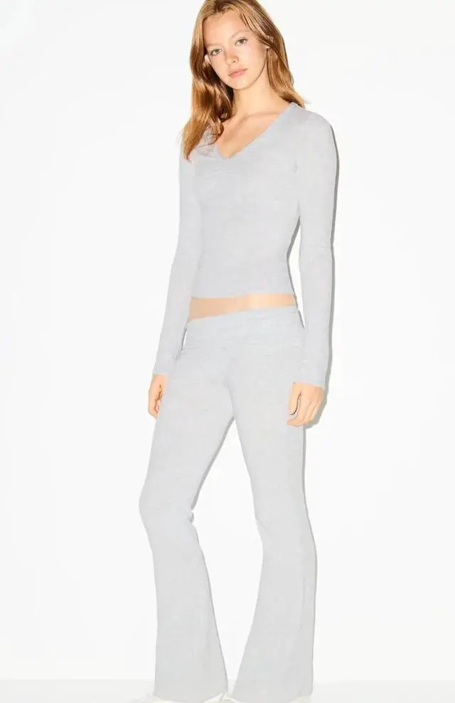 Your go-to pant for looking cute and feeling comfy. Our beloved lounge style features a comfortable folded waist that adds a feminine touch to your looks at home and on the go. Made with our signature soft, breathable jersey fabric that enhances your curves and comfort. Pair with a SKIMS Cotton Jersey tee or tank for a selfie-worthy set. Fits true to size. \n \nFold over waist band that can be adjusted to be low-rise or mid-rise to create a ruched look, Lightweight, Soot colorway provides more coverage, Inseam: 32" \n90% Cotton / 10% Elastane \nMachine wash cold, Do not bleach, Tumble dry low, Cool iron, Do not dry clean \nImported