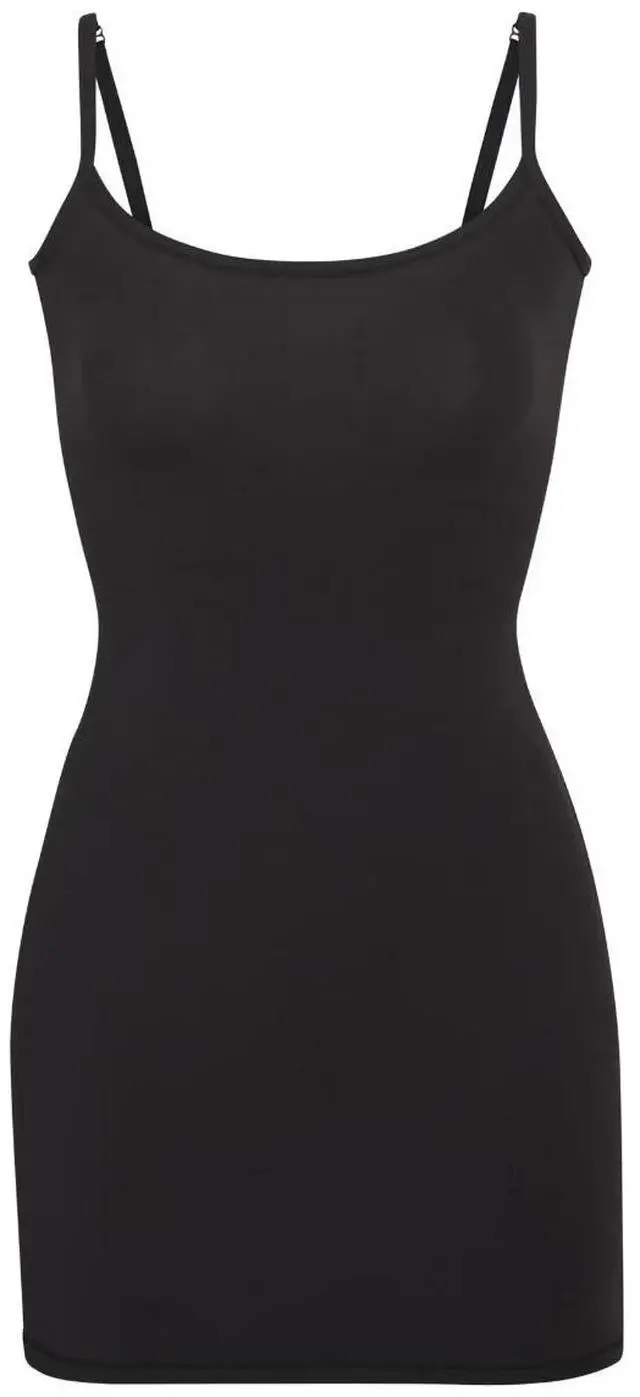 Versatile Cami Design: Featuring thin, delicate straps and a classic neckline, this mini dress is low-profile enough to hide under most necklines while providing full-body smoothing.