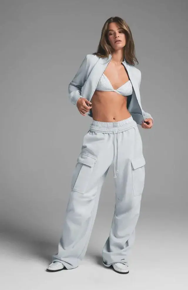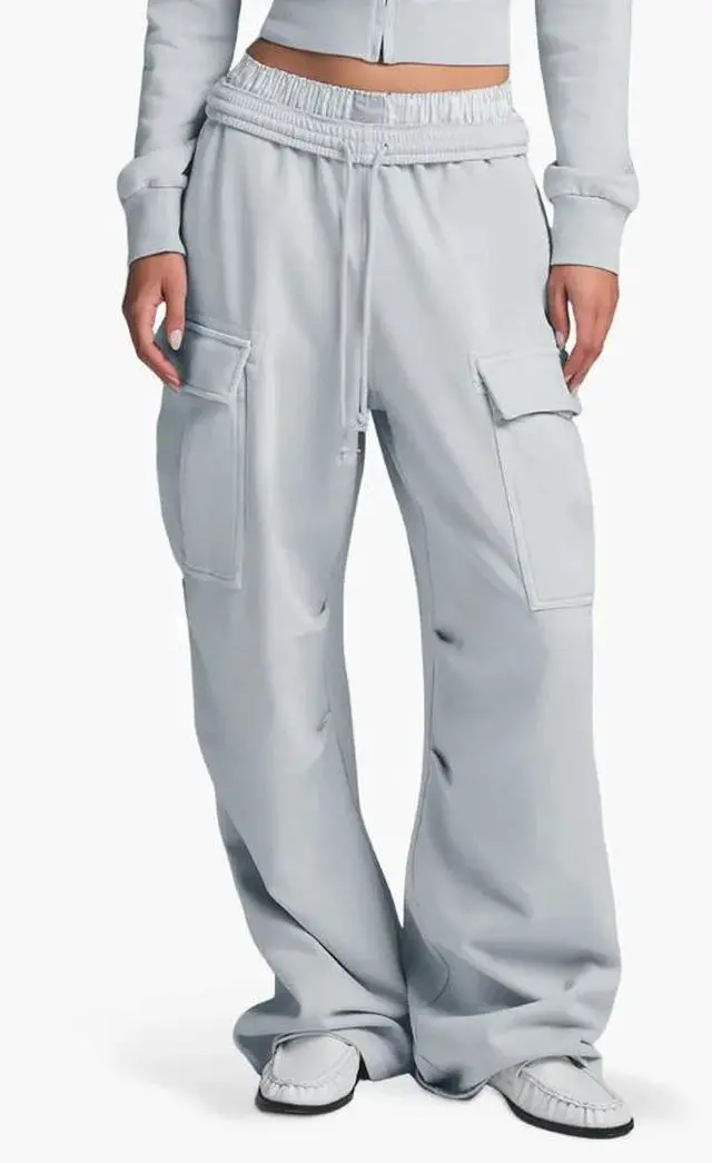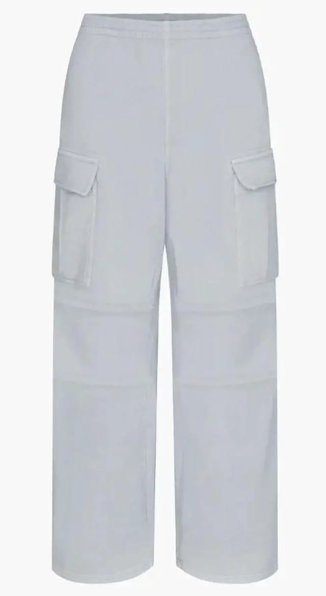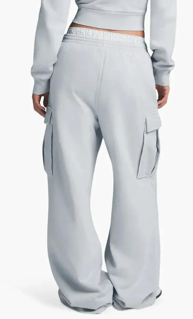 The pants youll sport on repeat. These high-waisted cargo sweatpants are the perfect wear-anywhere style. Made with signature heavyweight fleece, these oversized sweatpants feature an elastic waistband and interior drawstring for adjustability. Complete with side cargo pockets, pleating details at the knee, and an embroidered logo on the left leg for street-ready style. This garment has undergone a special wash process that may result in variations in shading and color. These variations are intentional and add to the unique characteristics of this garment. \n \n31 1/2" inseam; 23" leg opening; 14" front rise; 18" back rise (size Medium) \nElastic/drawstring waist \nSide flap-patch pockets \n100% cotton \nHand wash, dry flat \nImported