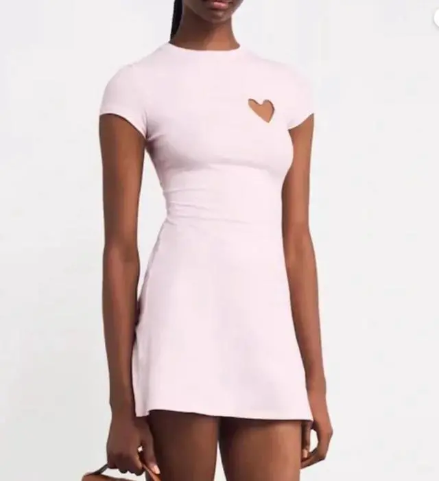 Versatile Style: Featuring a classic crew neckline and short sleeves, the dress offers a balanced amount of coverage to contrast with the short length and bold heart cutout.