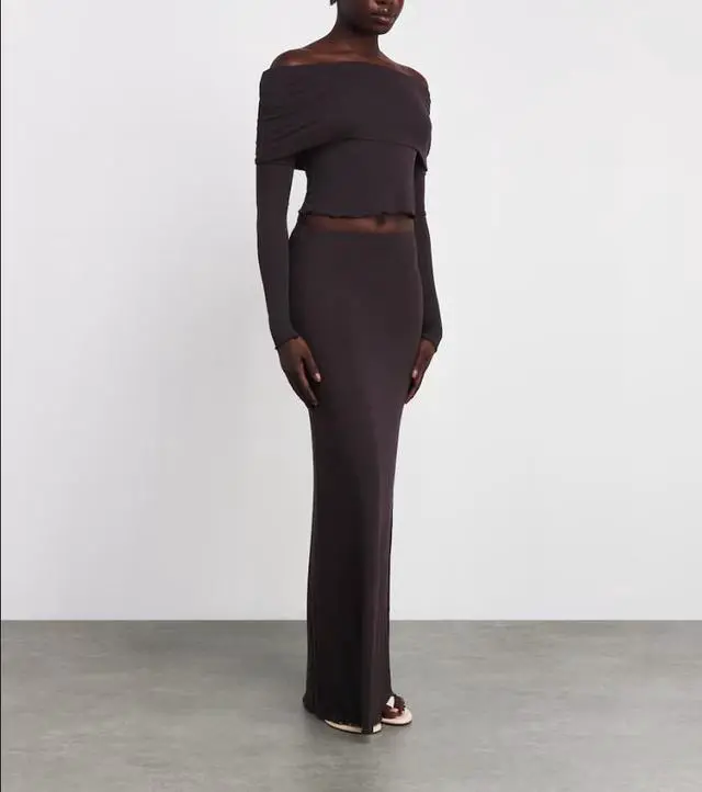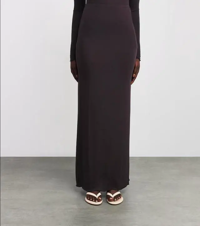 Crafted from a blend of modal, cashmere and stretch, SKIMS Sheer Modal collection combines the labels signature comfort with a seductive underpinning. Super-soft and lightweight, this maxi skirt drapes and hugs your curves in all the right places for a fit thats as suited to lounging at home as it is for a night on the town.