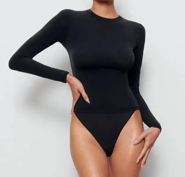 Skims Fits Everybody Long Sleeve T-Shirt, Onyx, Small