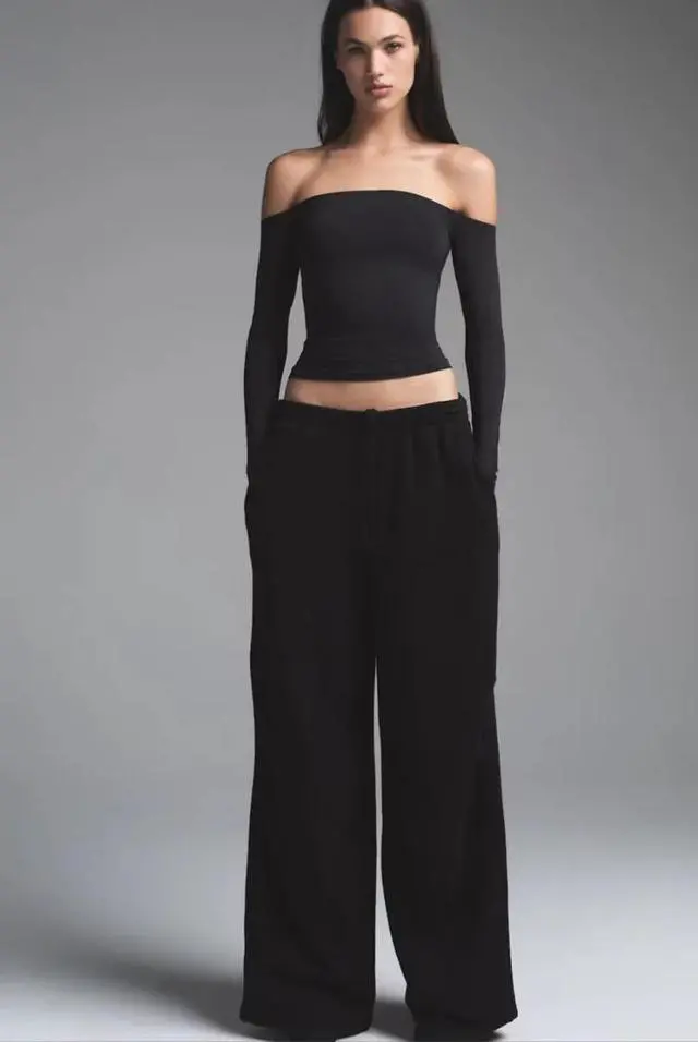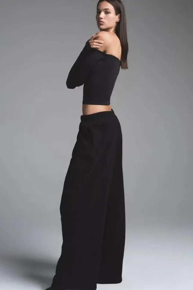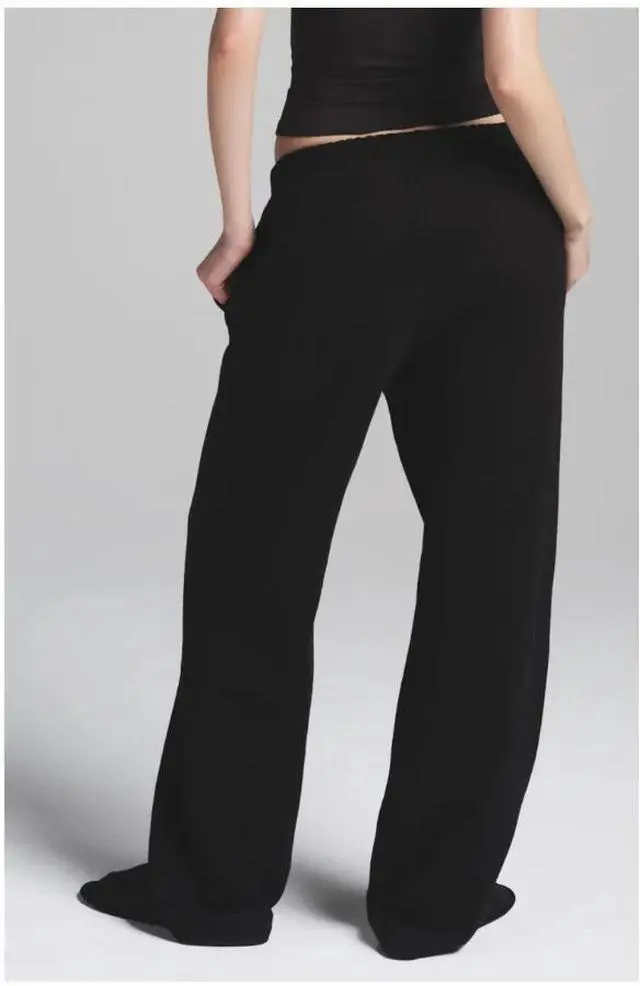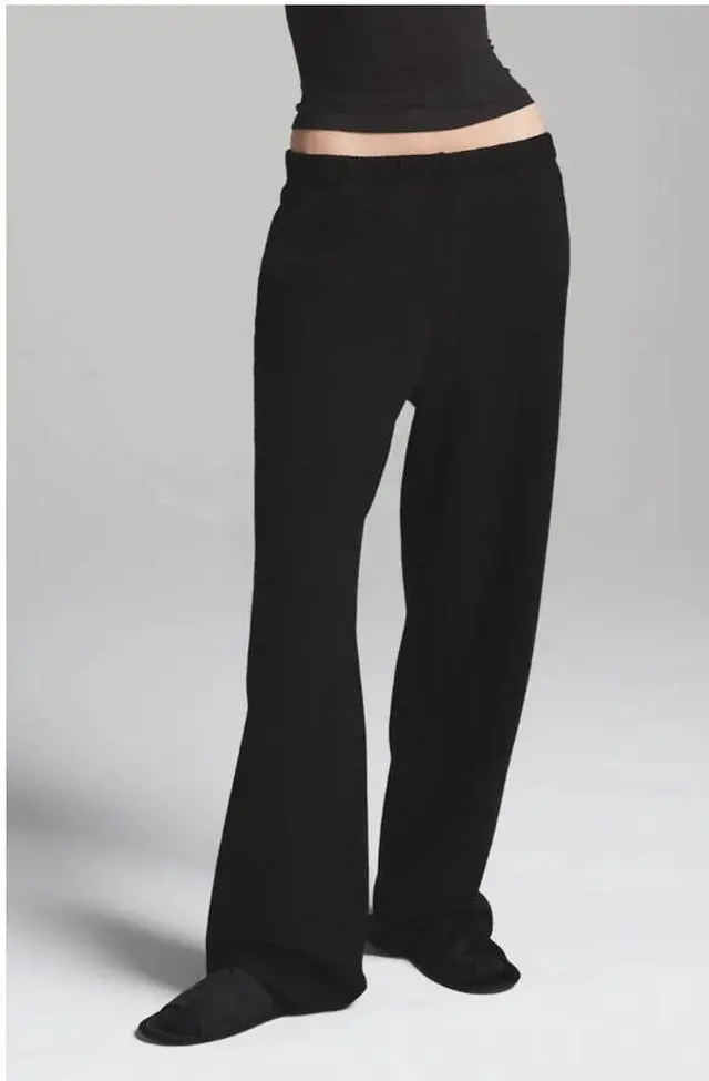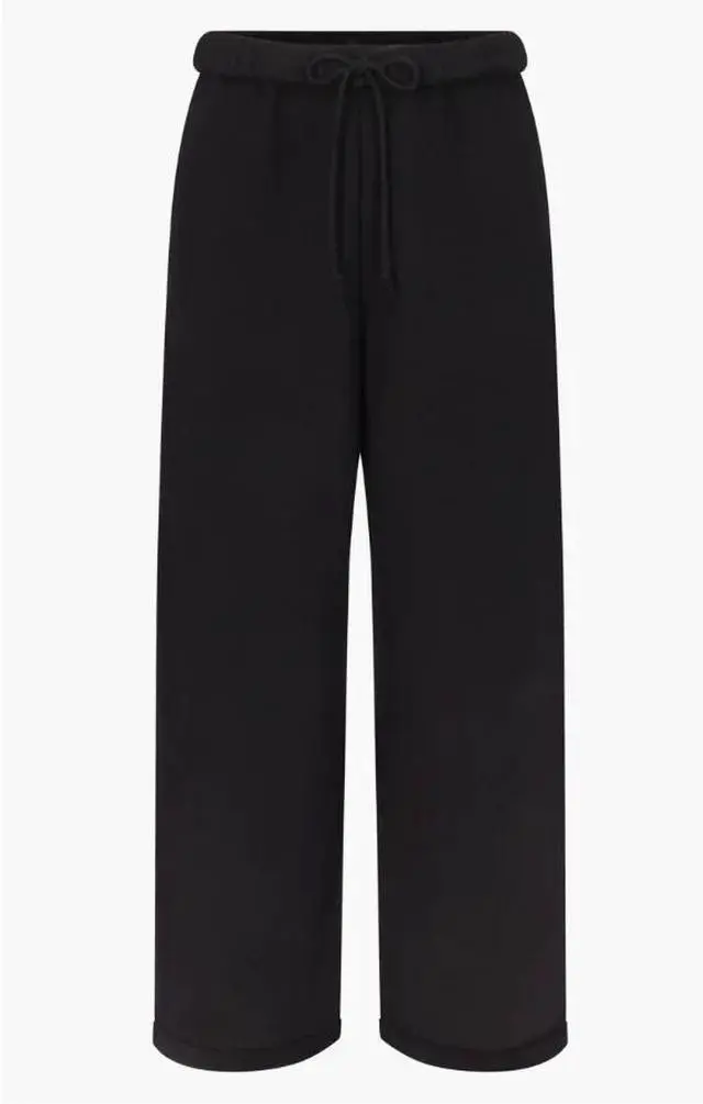 Skims Cotton Fleece Double Waistband Pant, Onyx, Large