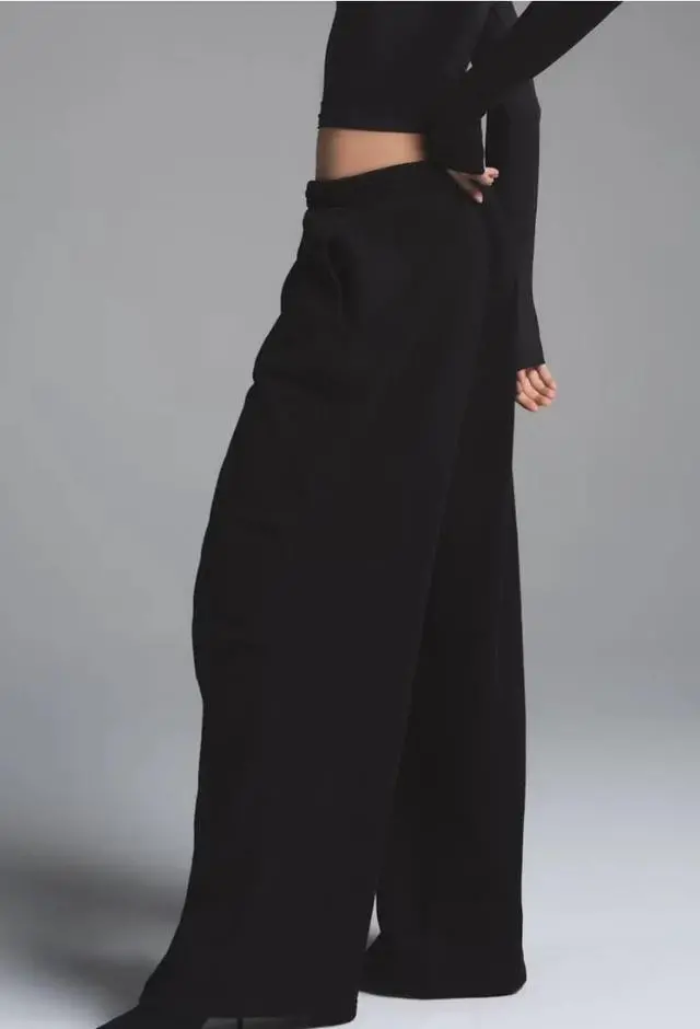 Skims Cotton Fleece Double Waistband Pant, Onyx, Large