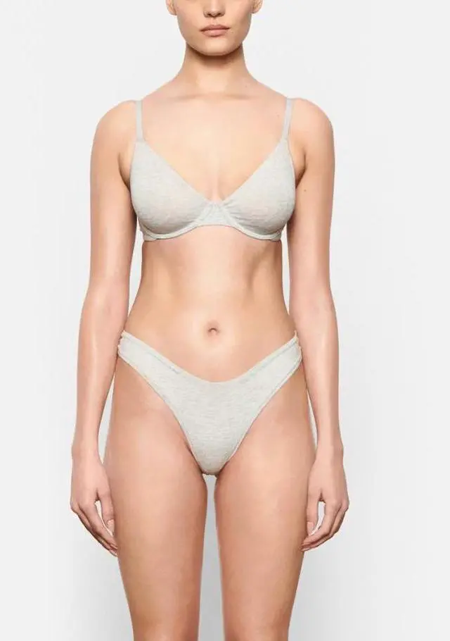 Skims Cotton Jersey Underwire Bra, Light Heather Grey, 36D