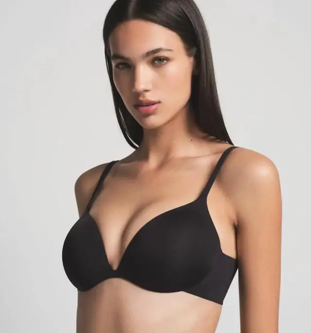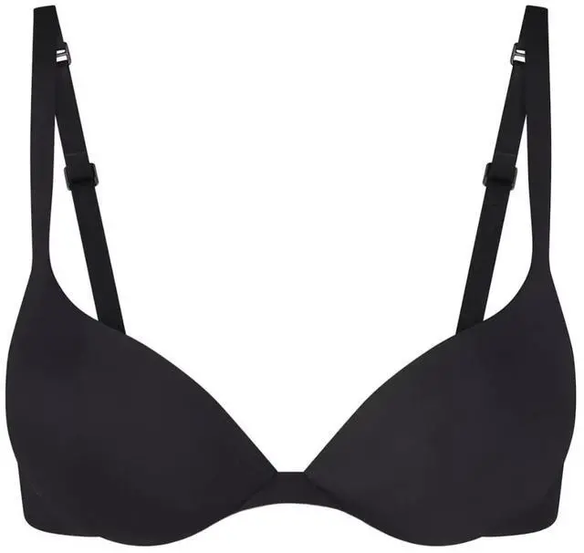 The Skims Ultimate Collection PushUp Plunge Bra in Onyx, size 38C, is a stylish and supportive underwired bra designed for women. It features a solid black color with a hook & eye closure for a comfortable fit. The plunge accent adds a touch of glamour, while the hand wash only care instruction ensures longevity. Made from blended fabric, this push up bra from the trusted brand Skims offers a flattering and comfortable silhouette for everyday wear.