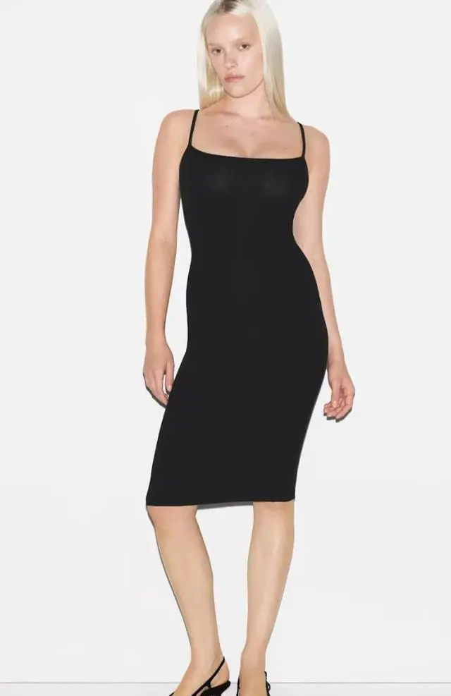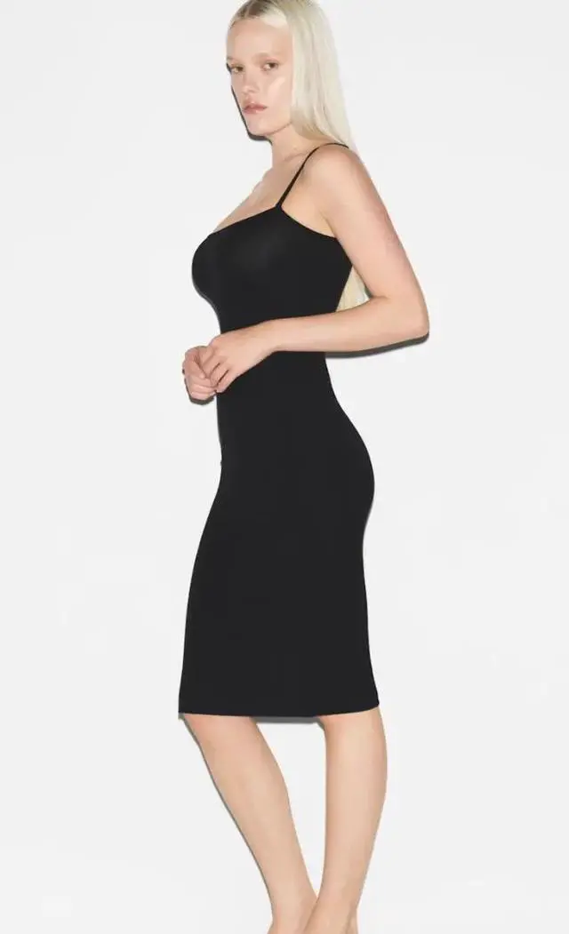 A midi moment. Made with our new ultra-smooth modal, this body-hugging dress exudes timeless sophistication anywhere you go. Complete with a lightly lined, built-in bra and adjustable cami straps.