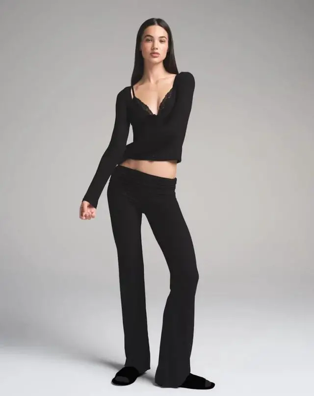 Elevate your lounge look. This lacy, feminine style offers flattering bust support with a sewn-in triangle bralette. Designed with our viral ribbed stretch-modal for curve-hugging comfort, this style is perfect for home and beyond.