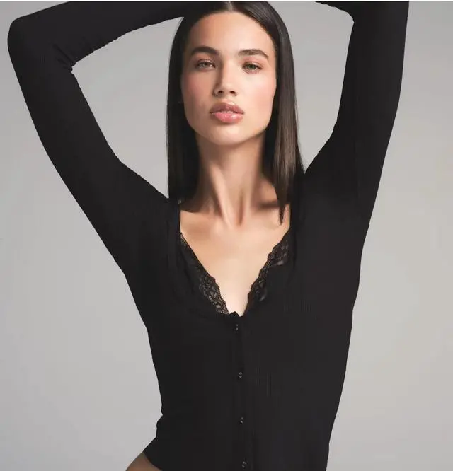 The Fit: In a Size Small, this top is designed to be fitted and curve-hugging. The Soft Lounge fabric has incredible stretch recovery, so it will feel snug but never restrictive. Most find it fits true to size, but if you have a very broad frame or larger bust, you might size up to ensure the buttons don't "pull. "