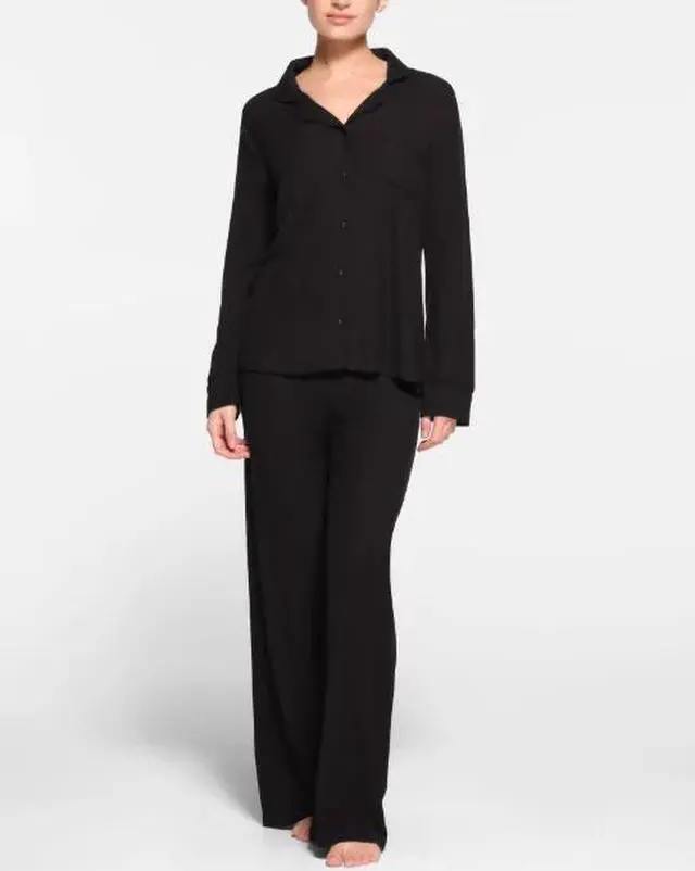 Skims Sleep Long Sleep Pants, Onyx, Small