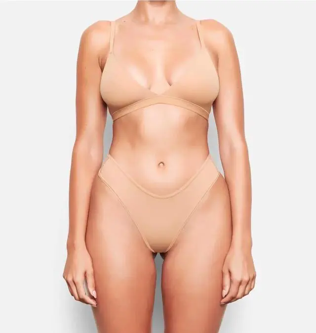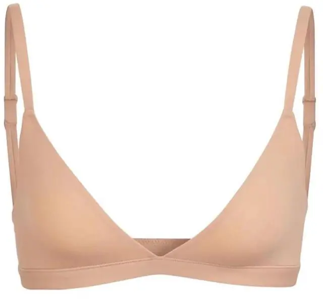 Skims Fits Everybody Triangle Bralette, Ochre, Small. The ultimate bra with 2-ply supportive stretch and second-skin softness. Max-stretch fabric never cuts into the skin, allowing live-in comforta performance essential with streamlined style.
