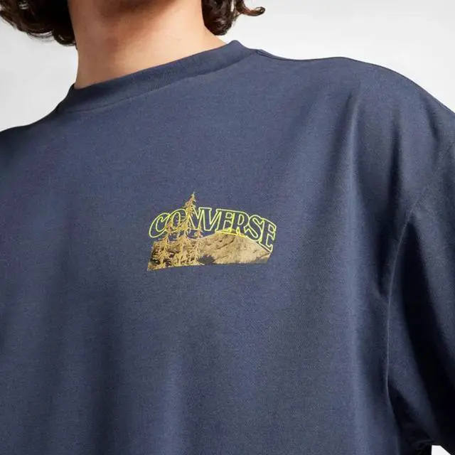 The Converse Men's Mountain Remix Graphic T-shirt in medium size is a stylish and comfortable option for men looking to add a solid pattern shirt with logo accent to their wardrobe. Made of cotton material, this short sleeve t-shirt features a crew neck neckline and regular fit, making it suitable for all seasons such as summer, fall, and spring. With machine washable care instructions, this shirt is easy to maintain and a great addition for men who enjoy quality clothing from a reputable brand like Converse.