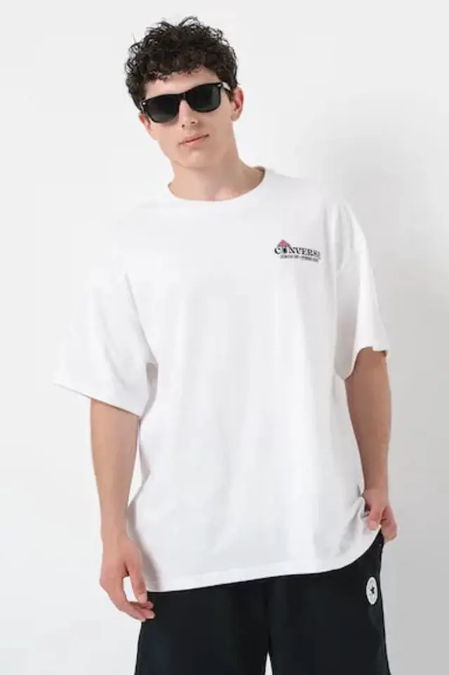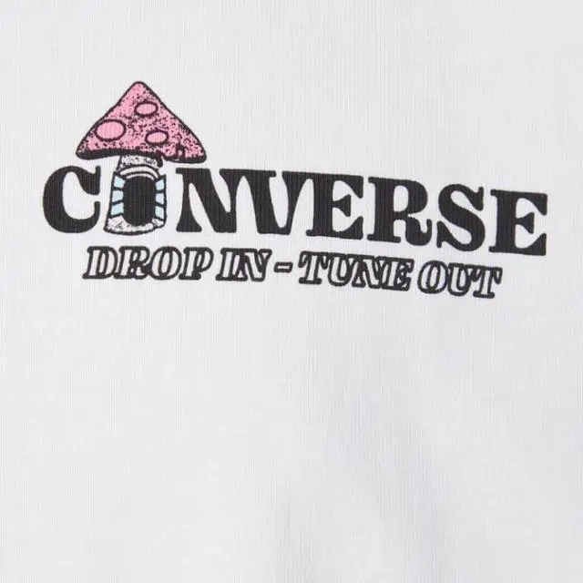 The Converse Men's Home Mushroom House Tee in size Medium is a solid-colored t-shirt with a crew neck and short sleeves, made of cotton material. This regular fit shirt is machine washable and perfect for the summer season. With a vintage-inspired design and the iconic Converse brand, this t-shirt is ideal for men looking for comfortable and stylish clothing options.