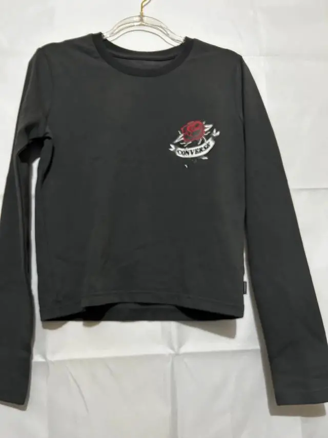 The Rose Tattoo Cropped Tee is designed for high-contrast, "rebellious" styling. To emphasize the cropped cut, pair it with high-waisted cargo pants or distressed denim shorts. For footwear, the Chuck Taylor All Star Move (platform) or One Star Pro sneakers in black or red will perfectly complement the tattoo aesthetic.