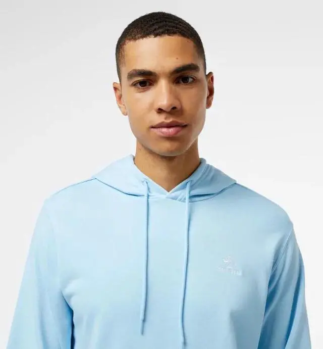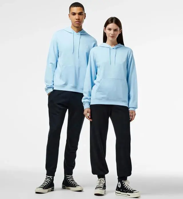 The Blue Go-To Hoodie is an excellent layering piece. For a classic athletic vibe, pair it with grey Converse joggers and white Chuck Taylor All Stars. If you want a more intentional streetwear look, layer it under a light-wash denim jacket or a black puffer vest to let the blue sleeves and hood provide a vibrant contrast.