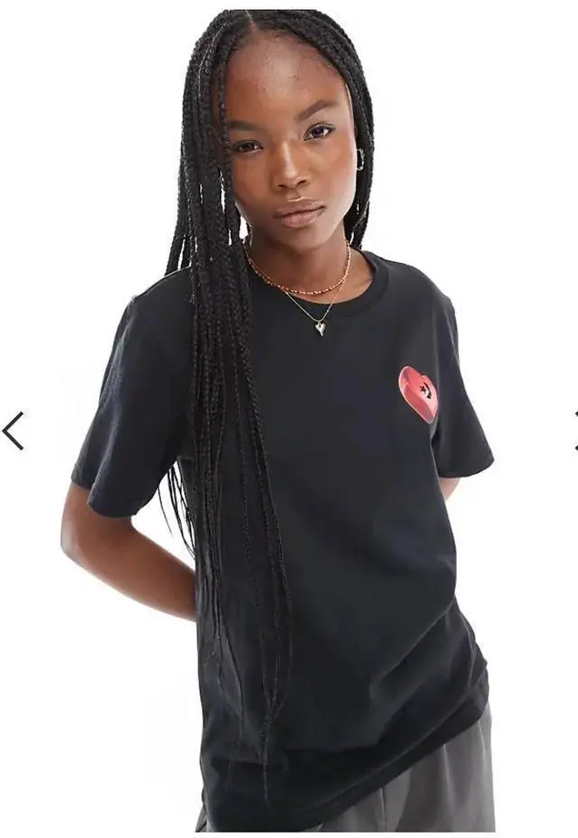 The Black Heart T-Shirt is a fantastic statement piece. For a classic streetwear look, pair the 3XL tee with light-wash distressed denim and high-top Chuck 70s. If you want a more athletic, "skate-ready" vibe, style it with black bike shorts or leggings and a pair of One Star Pro sneakers.