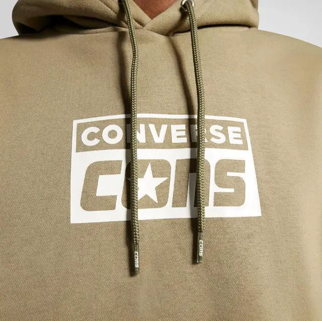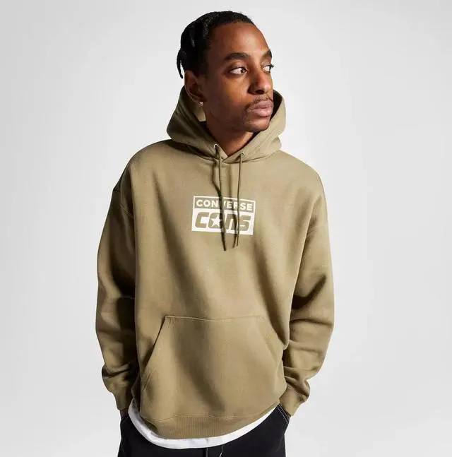 The Converse Men's Cons Men's Khaki Hoodie in size Medium is a versatile and stylish piece of activewear for men. Made of cotton, this solid long sleeve hoodie features a regular fit and pullover style. Perfect for the winter, fall, and spring seasons, this hoodie is easy to care for with its machine washable fabric. The classic khaki color and Converse branding make it a timeless addition to any man's wardrobe.