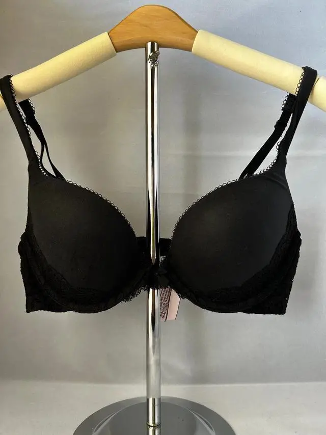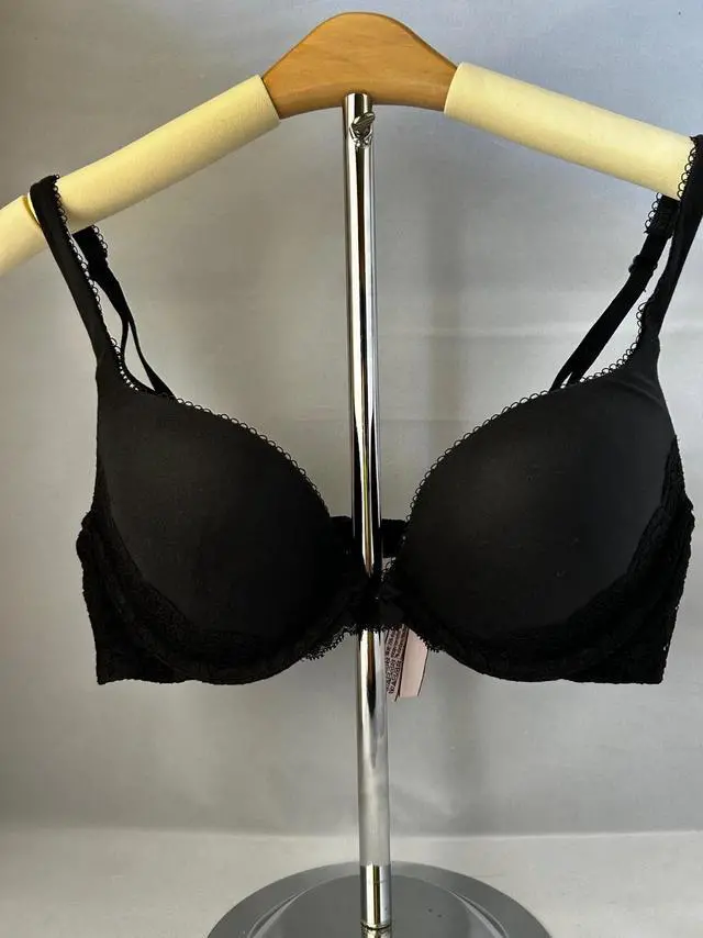 The Victoria's Secret Black Push-Up Bra in size 34C is a stylish and supportive undergarment designed for women. This bra features a solid black color with a hook & eye closure, making it easy to put on and take off. The underwired design provides lift and shape, while the push-up style enhances the bust. Made from a blended fabric with a push-up feature, this bra is designed for comfort and style. Perfect for everyday wear or special occasions, this Victoria's Secret bra is a must-have for any woman's lingerie collection.