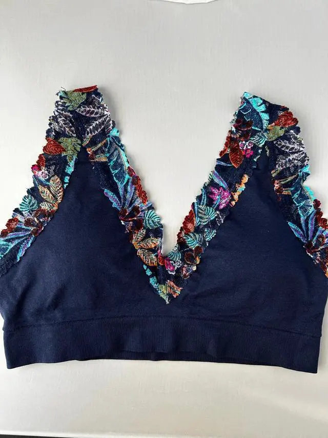 The Blue PINK Bralette is designed to be seen. For a modern streetwear aesthetic, pair it with high-waisted joggers and let the "vibrant blue" straps peek through a distressed denim jacket.