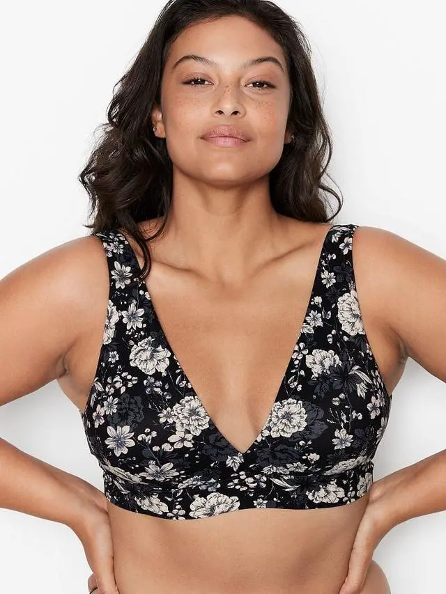 The Victoria's Secret Floral Black Bralette in XL is a stylish and comfortable wireless bra with a hook & eye closure. Made from polyamide lace fabric, this bralette offers adjustable straps for a personalized fit. The floral pattern adds a touch of femininity to the classic black color, making it a versatile and flattering choice for women looking for a chic and supportive undergarment. Perfect for everyday wear or special occasions, this Victoria's Secret Very Sexy product combines fashion and function in a bra that is both practical and sexy.