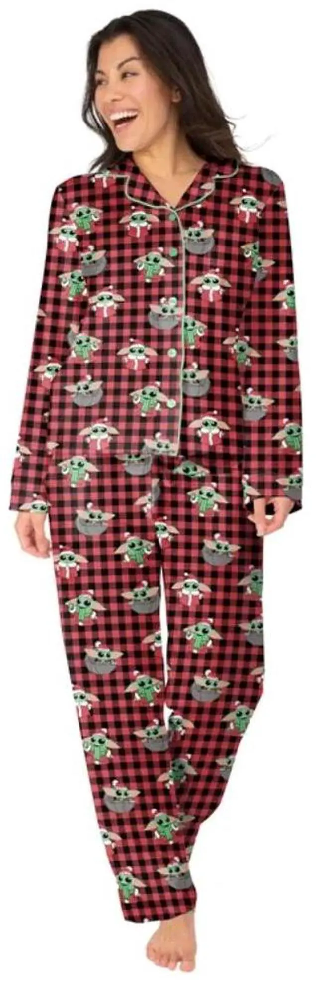 This Star Wars Baby Yoda Munki Munki Women's Classic Notch PJ Set in size Large includes a long sleeve top with a button closure, perfect for the winter, fall, or spring seasons. The multicolor pajama set features Baby Yoda from the Star Wars franchise, making it a fun and stylish choice for any Star Wars fan. Made by the brand Munki Munki, this pajama set is machine washable for easy care and is a must-have for any woman wanting to cozy up in style.