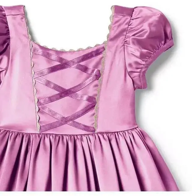 Disney Rapunzel Dress, Girls Size 12. Inspired by Disney's Rapunzel, dress up and dream in the perfect princess look. With puff sleeves, metallic ric-rac trim and lace up ribbon details, it's the dress for every adventurer.