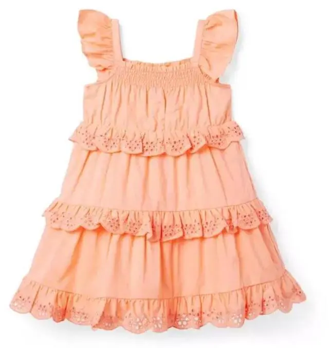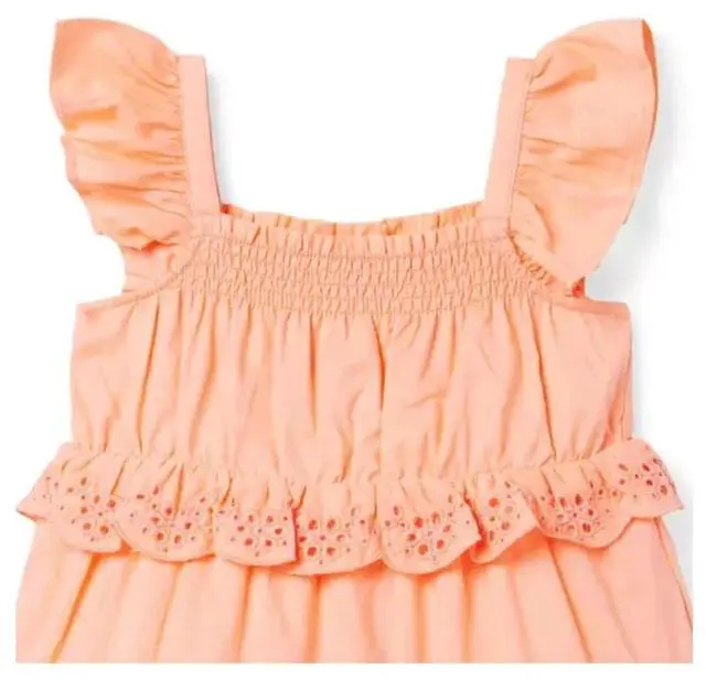 Warmer days are calling in this breezy dress. With a stretch smocked neckline, ruffle straps and tiered eyelet details we love. 100% Cotton Batiste Fully Lined Sleeveless; Button Back Above The Knee Length Bloomer Included (Sizes Up To 18-24M) Machine Washable; Imported A Forever Kind of Love. We make clothes that last. Keepsakes that can stay with your family, be handed down to your friends or donated for someone else to love.