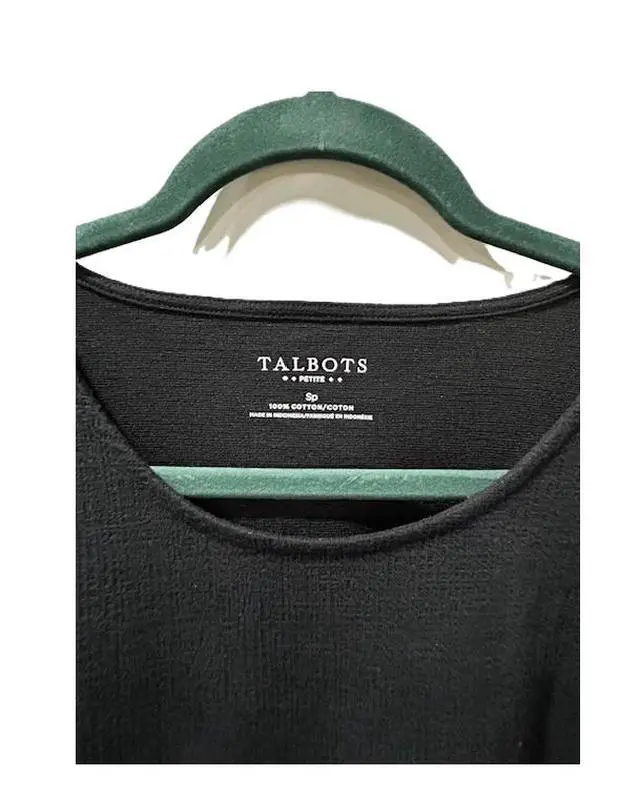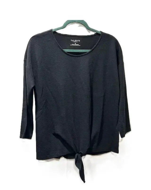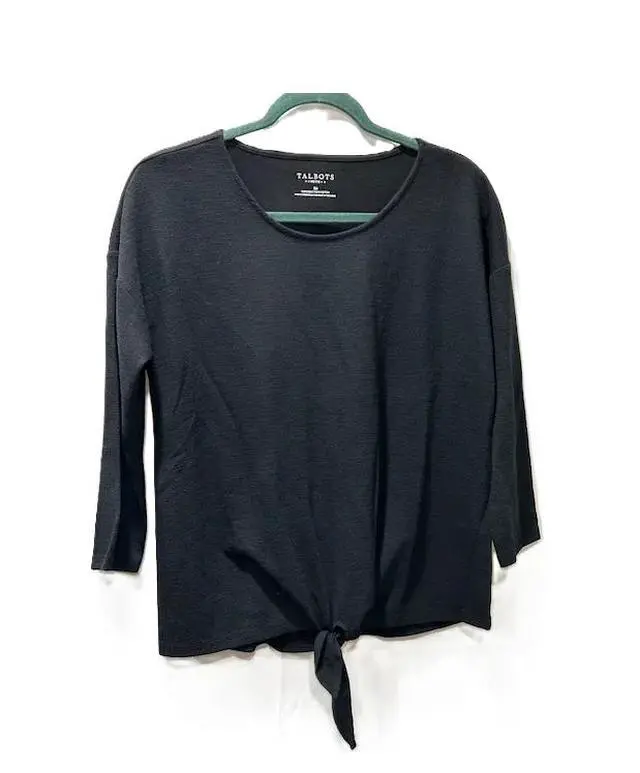 Effortless Elegance with Every Wear \nElevate your wardrobe with the Talbots Women Top. Designed for petite sizes, this crisp black top is perfect for adding a touch of sophistication to your everyday ensemble. The 3/4 sleeve cut offers versatility, making it suitable for both casual outings and polished occasions. Whether paired with jeans or tailored trousers, this top strikes a perfect balance of style and comfort. \nExceptional Fit for Petite Frames \nCrafted with precision and attention to detail, this Talbots top is specifically tailored for petite women, ensuring an impeccable fit. The fabric gently contours to your body, enhancing your silhouette without compromising on comfort. Its sizing, labeled Petite Small, guarantees that you dont have to worry about extra bulk or overly long sleevesjust a perfect match for your proportions. \nA Timeless Black Wardrobe Staple \nBlack is a classic color that never goes out of style, and this top is no exception. The deep, rich shade complements various skin tones and pairs seamlessly with a wide range of accessories and outfits. Whether you dress it up with statement necklaces and high heels or keep it casual with sneakers and denim, this Talbots Women Top is designed to suit your unique style preferences. \n \nMake your wardrobe work smarter, not harder, with this versatile Talbots Women Top in black. Its perfect cut, petite sizing, and timeless appeal combine to offer an essential piece for all occasions. Consider adding this elegant item to your collection today, and enjoy fashion that prioritizes both beauty and function.