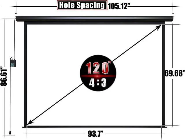 Size and Aspect Ratio- 4:3 aspect ratio, 120 Diagonal Screen Size ( 93.7 X 69.7 in), Carton