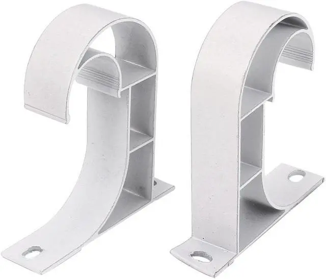 2pcs 1 Inch Dia Drapery Curtain Rod Hook Shape Metal Ceiling Bracket grey white