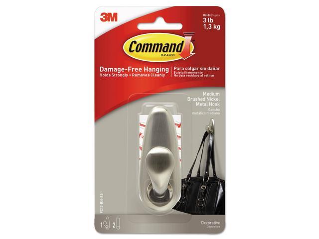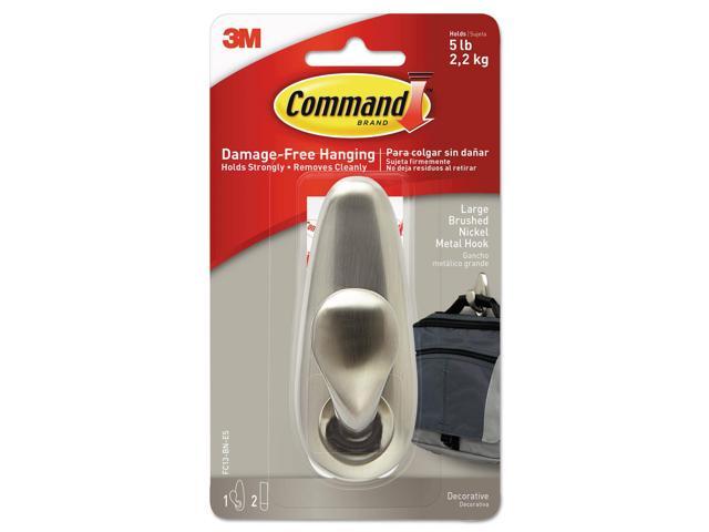 Adhesive Mount Metal Hook, Large, Brushed Nickel Finish, 1 Hook & 2 Strips/pack