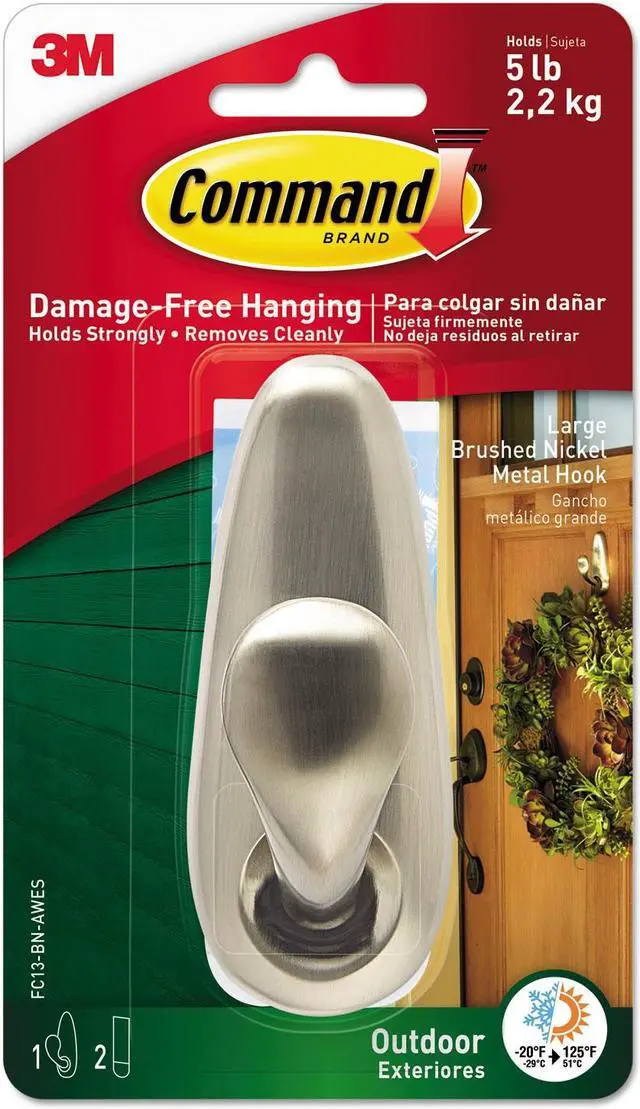 Perfect for hanging wreaths, signs, thermometers, lights, or other seasonal decorations directly. Use them on the patio, deck or on the side of the house or other structures. Specially designed to hold strongly outdoors - they are water resistant, UV resistant, and can handle temperature extremes from -20 degrees F to 125 degrees F! Remove cleanly - with no marks or sticky residue - so you can use them over and over again. Hanger/Hook Type: Hook; Width: 1 5/8"; Depth: 1 5/8"; Height: 4 1/8".