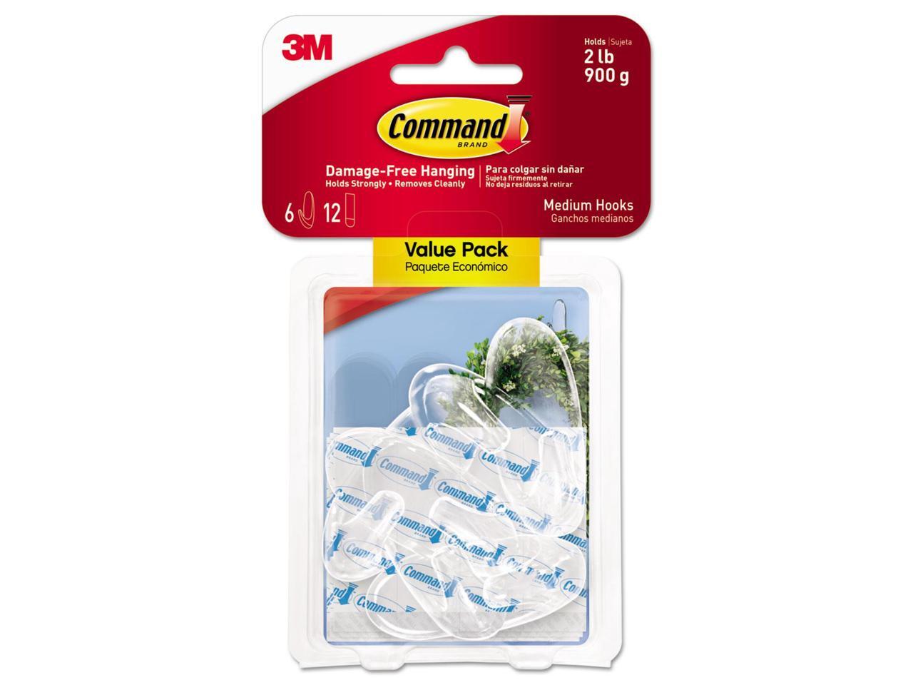 Clear Hooks & Strips, Plastic, Medium, 6 Hooks & 12 Strips/pack