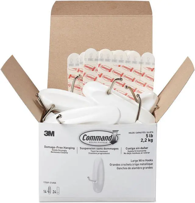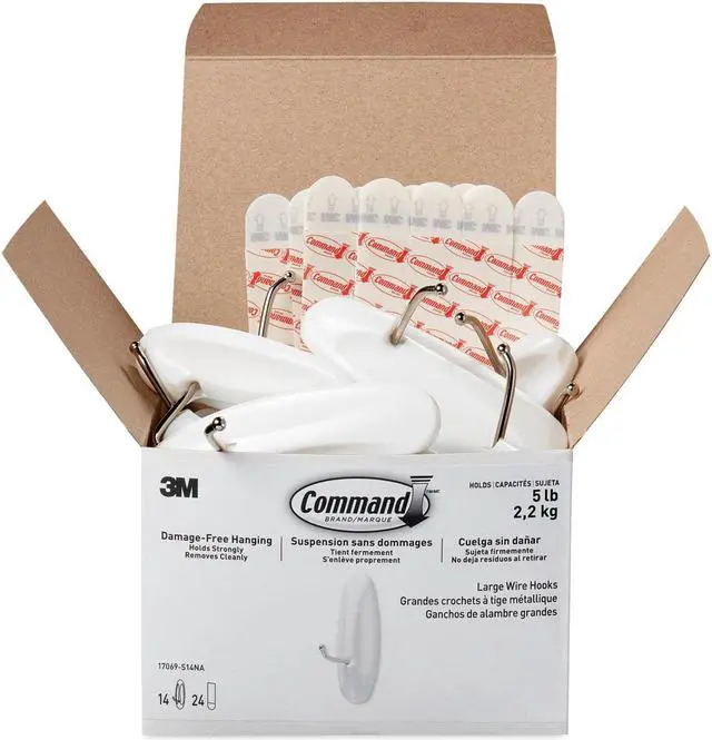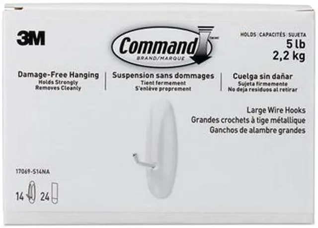 Command General Purpose Hooks, Metal, White, 5 lb Cap, 14/Pack