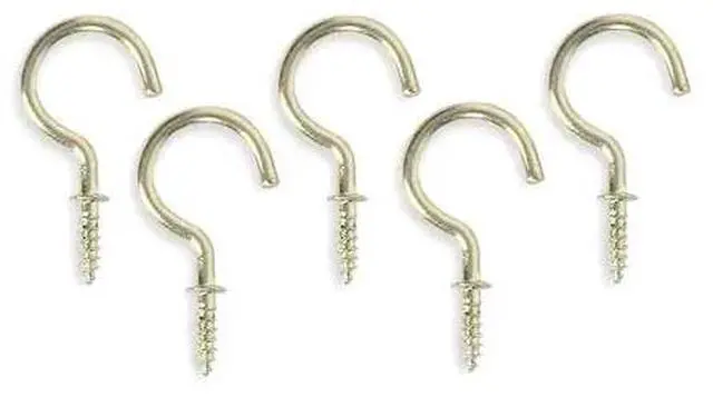 California Proposition 65: This product contains a chemical known to the State of California to cause birth defects or other reproductive harm. Single Point Hook, Fastening Method Screw In, Points per Hook 1, Number of Hooks 1, Basic Hook Material Steel, Hook Finish Brass, Hook Height 3/4 in, Hook Base Width 5/8 in, Projection 1 in, Brass, Thread Size Not Applicable, Weight 2.3, Thread Length 3/8 in, Includes Not Applicable, Mounting Screw-In, Overall Length 1 1/4 in, Package Quantity 20