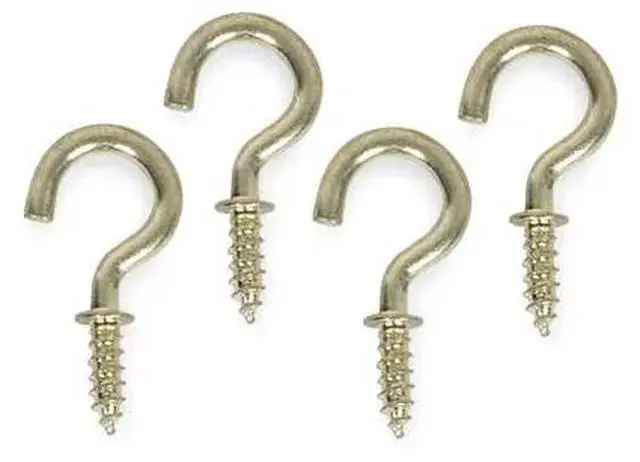 California Proposition 65: This product contains a chemical known to the State of California to cause birth defects or other reproductive harm. Single Point Hook, Fastening Method Screw In, Points per Hook 1, Number of Hooks 1, Basic Hook Material Steel, Hook Finish Brass, Hook Height 1 1/8 in, Hook Base Width 1/4 in, Projection 1/2 in, Brass, Thread Size Not Applicable, Weight 0.9, Thread Length 1/4 in, Includes Not Applicable, Mounting Screw-In, Overall Length 3/4 in, Package Quantity 20