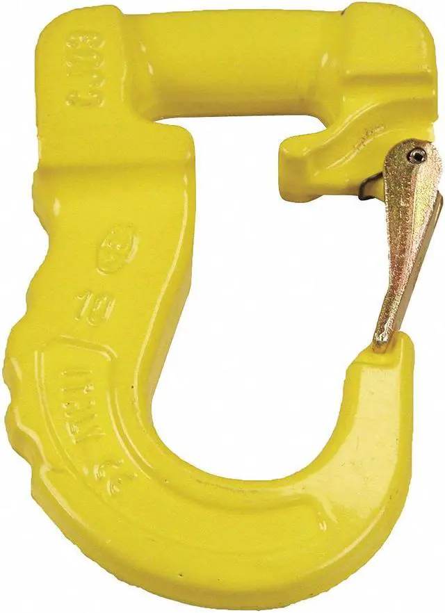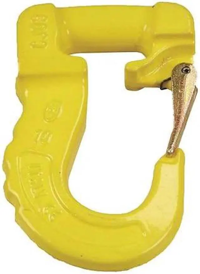Sling Hook, Hook Type Sling Hook, Working Load Limit 8, 400 lb, Material Alloy Steel, Material Thickness 1 3/4 in, Hook Opening Width 1 1/2 in, Overall Length 4 5/8 in, Usable Length 4 5/8 in, Overall Width 2 3/16 in, Eye Inside Diameter 1 31/32 in, Eye Inside Height 4 5/8 in, Thread Size Not Applicable, Shank Diameter Not Applicable, Shank Length Not Applicable, Clevis Inside Width Not Applicable, Attachment Type Direct Connect, Clevis Pin Diameter Not Applicable, Markings None.