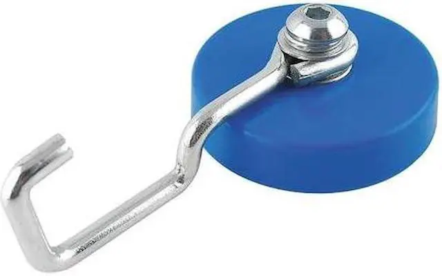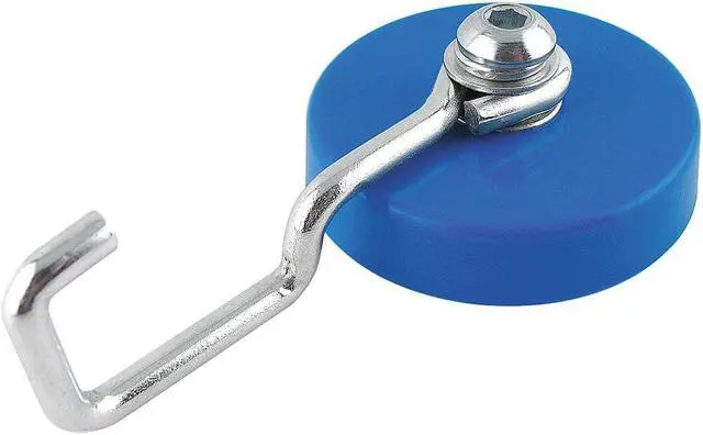 Single Point Hook, Fastening Method Magnetic, Points per Hook 1, Number of Hooks 1, Basic Hook Material Steel, Hook Finish Polished, Working Load Limit 25 lb, Hook Height 3 in, Hook Base Width 5/8 in, Projection 1 in, Blue, Hook Eye Inside H 3/64 in, Hook Eye Inside W 3/4 in, Base Dia. 2.25 in, Depth 3/8 in, Thread Size Not Applicable, Weight 0.35 lb, Thread Length Not Applicable, Includes Hook, Hardware Included, Mounting Magnetic. This item has been restricted from sale in the following state (s): []