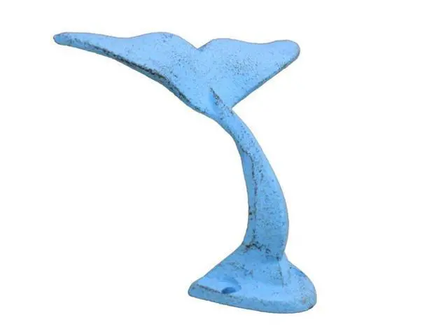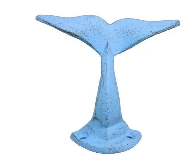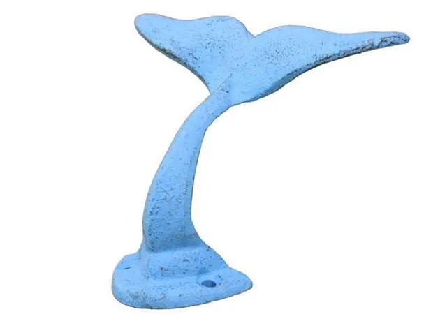 The rustic light blue cast iron decorative whale tail hook 5 inch is the perfect addition for any nautical themed home. Handcrafted from cast iron, this whale hook is durable, functional and decorative. Easily mountable, display this decorative key hook to show those who visit your home Affinity for the nautical Sea-Faring lifestyle.