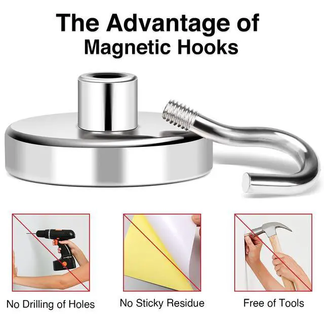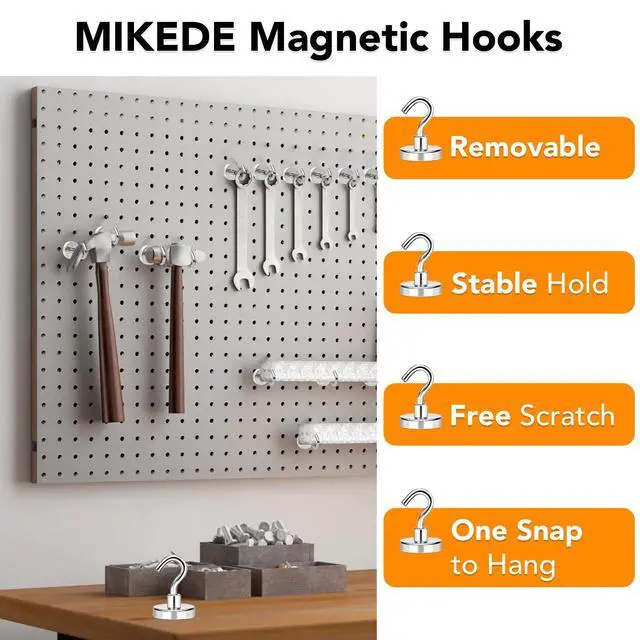 · MIKEDE magnets not only have high quality and exquisite appearance, but also have super strong magnetic force, made from the world's strongest magnetic element, our neodymium magnets with hooks are incredibly powerful. No matter your application, our powerful magnets can handle the job!