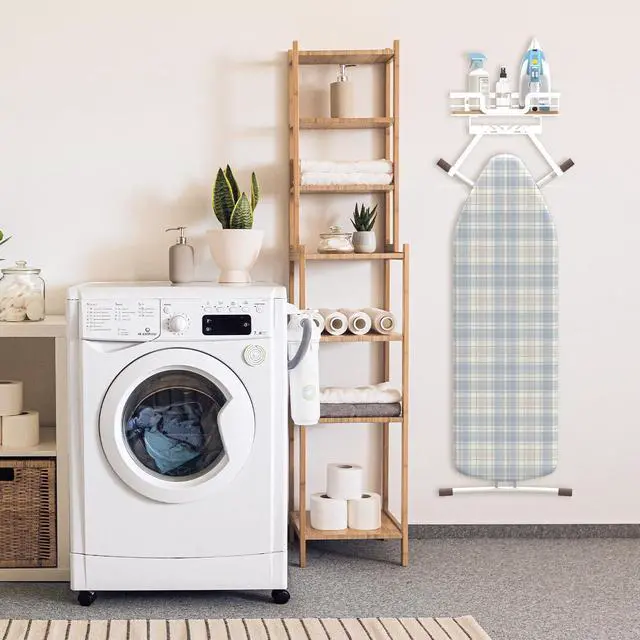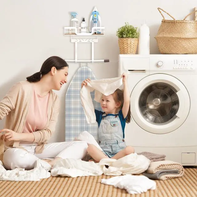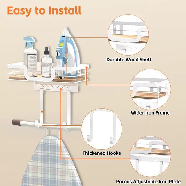 Keeps your ironing board and steam iron off the floor and out of closets.