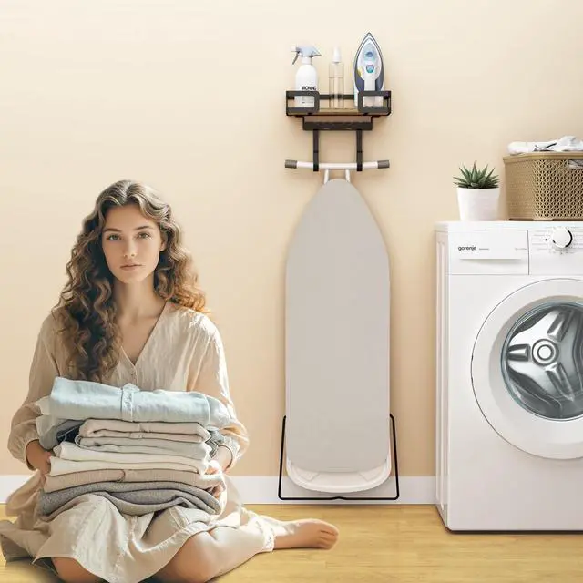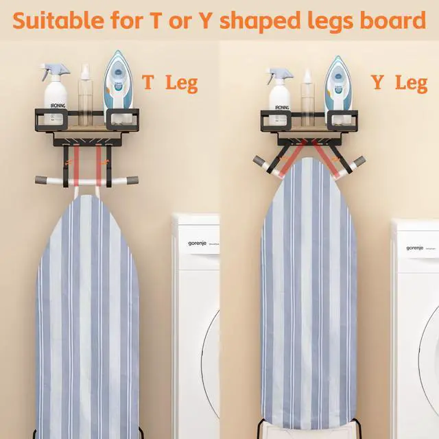 Keeps your ironing board and steam iron off the floor and out of closets.