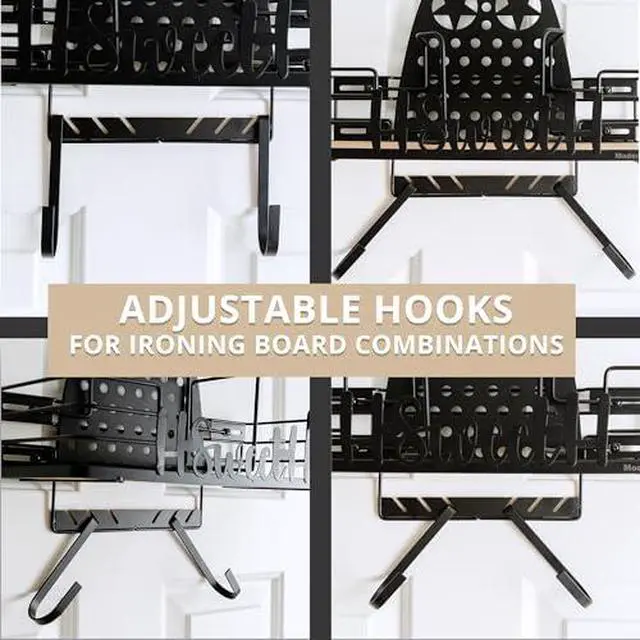 This space-saving ironing board hanger measures just 18" tall, 6" deep, and 14" long, so it will fit seamlessly into your home without taking up valuable floor space. But the real genius of this hanger lies in its versatility – it comes equipped with adjustable hooks that can accommodate ironing boards of various sizes and shapes.