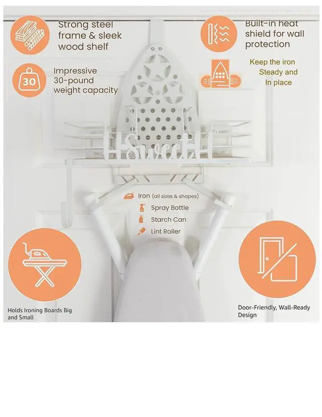 • Hang on a Door or Wall? Your Call: If you want to save wall space, you can hook the ironing board hanger over any standard door; And if you prefer a more permanent home for your ironing station, you can mount it on the wall for a sleek, built-in look