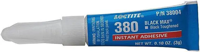 The original elastomer-modified instant adhesive. Excellent peel, impact, and shear strength. Adhesive Type: Cyanoacrylate Adhesive; Color on Application: Black; Capacity (Volume): 1 oz; Suggested Use: Plastic; Metal; Rubber.