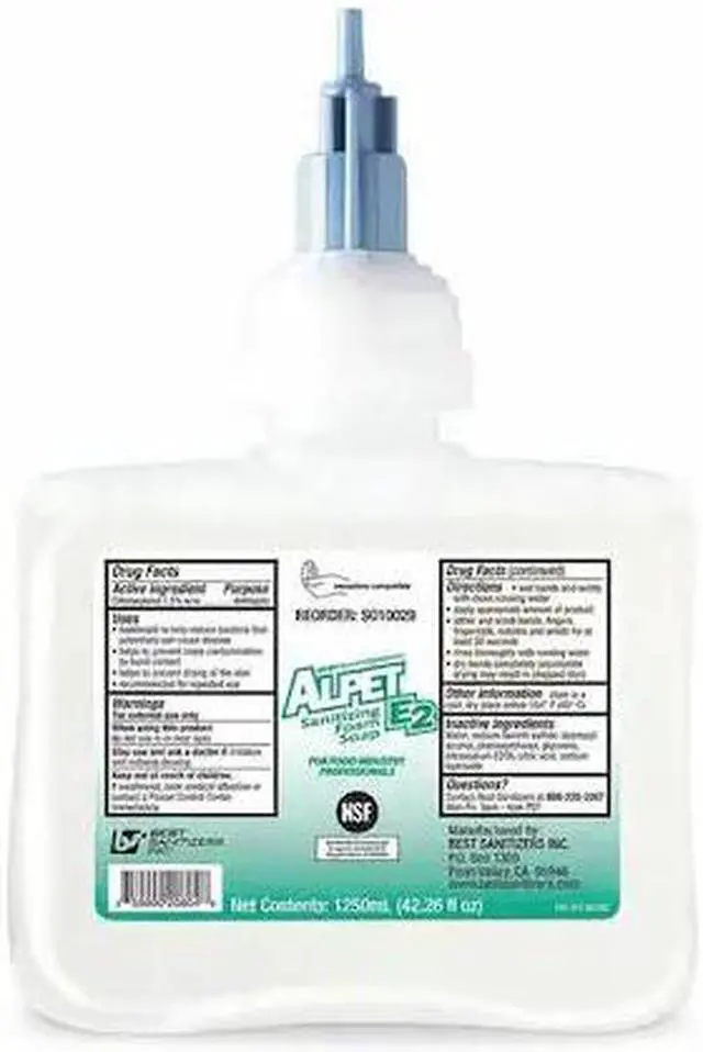 Hand Soap, Hygiene Series Alpet E2, Requires Dispenser Yes, Packaging Type Cartridge, Hygiene Form Foam, Size 1, 250 mL, Hygiene Properties Sanitizing, Formula 1.5 Percent PCMX, Fragrance Unscented, Color Clear, Uses Dispenser AD10048, AD10048B, MD10030, MD10030B, Hand Soap, Package Quantity 6